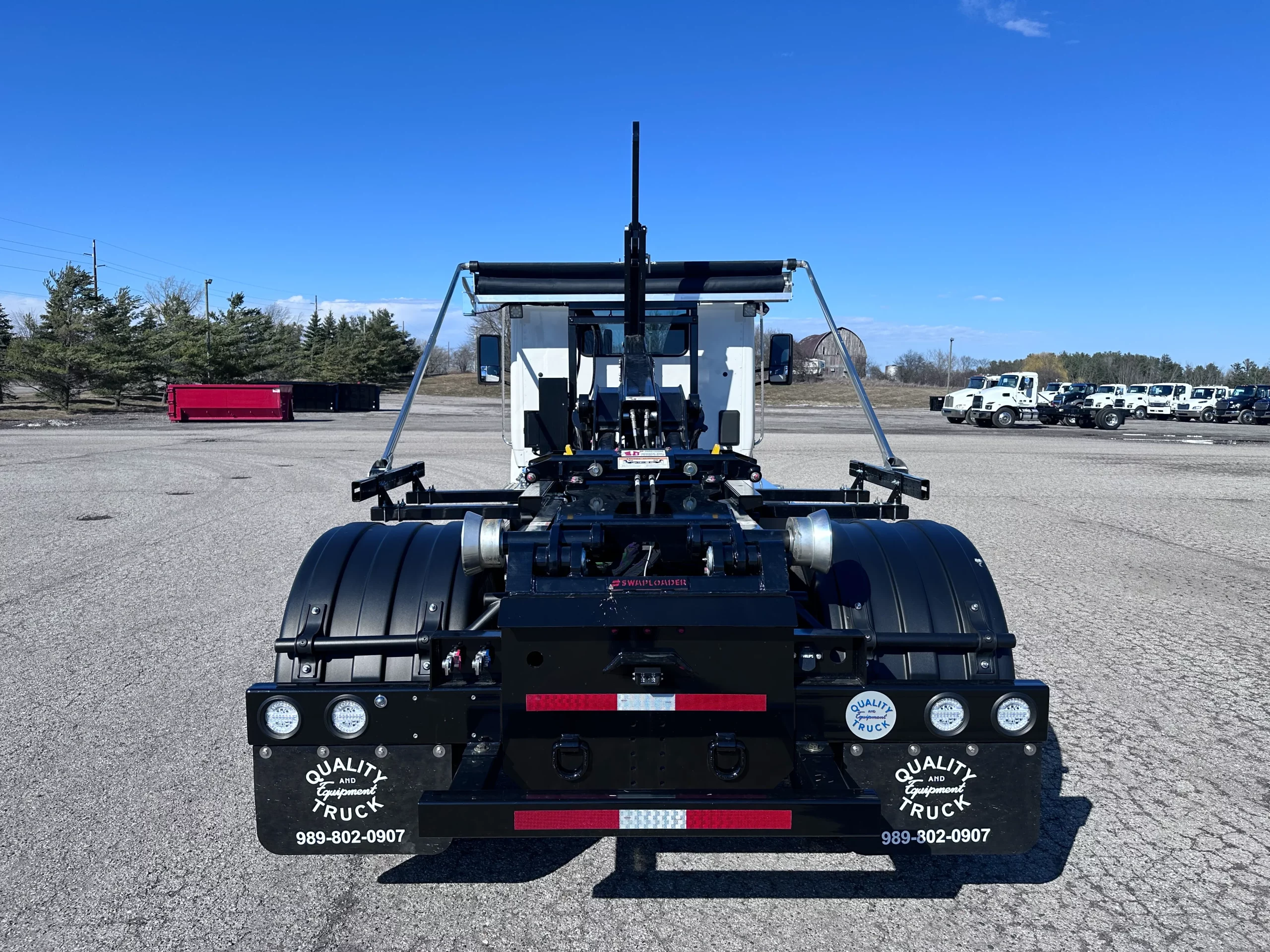 The 2026 Peterbilt 536 Hooklift Truck features a 26,000-lb GVW chassis with a 225-inch wheelbase, a 10,000-lb front axle, and a 20,000-lb rear axle capacity. It includes Air Leaf suspension, a 160-inch cab-to-axle distance, and aluminum wheels with 11R22.5 virgin tires. Powered by a PACCAR PX-7 diesel engine with 300 HP and a 50-gallon fuel tank, it pairs with an Allison 3000RDS 6-speed automatic transmission. The cab includes heated mirrors, air conditioning, and an LED display inside. Hoist Options: Swaploader SL-214 Hooklift, 20,000lbs Lifting Cap , 36″ to 54″ Manual Adjustable Hook Height, Can Handle Containers 12-16 Ft Optimally. Swaploader Universal Body Lock System Included. Add-Ons: US Tarp Waste Warrior tarp system, Buyers toolbox, backup camera, custom bumper with grille strobe lights and 5-way lights, and a 7-way plug.